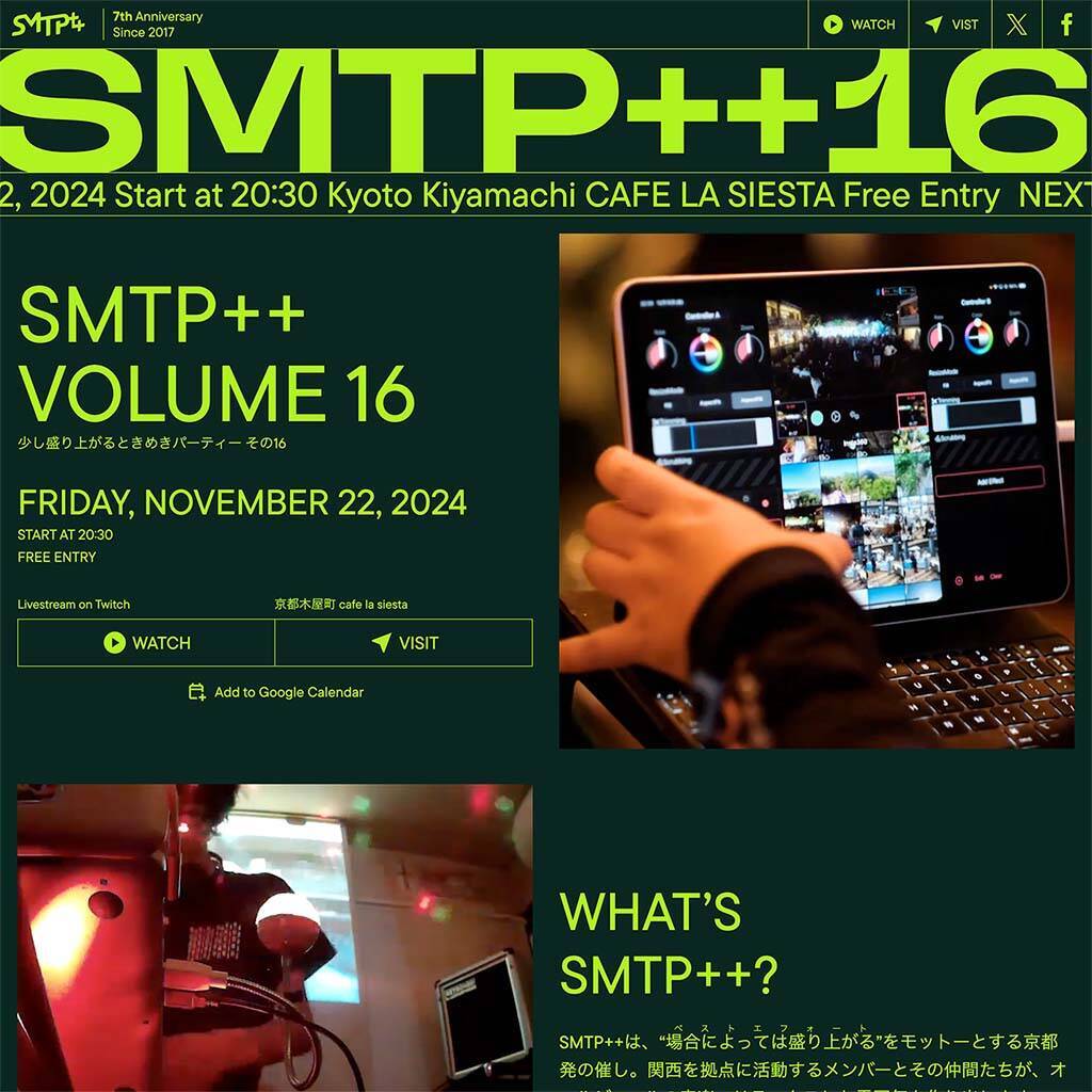 2024年11月22日(金)、「SMTP++ 16」という催しをやる。場所は京都木屋町 cafe la siesta ほかTwitch配信もある。